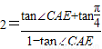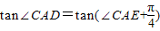 【答案】分析:有已知矩形ABCD由两个正方形拼成,设正方形的边长为1,由图可知:∠CAD=∠DAD+CAE,利用两角和的正切公式即可求得.