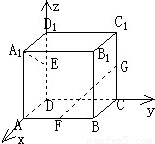 【答案】分析:以D为坐标原点,建立如图直角坐标系,可得出A1、E、G、F各点的坐标,从而得到