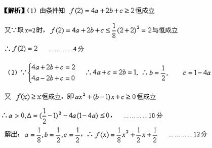 (1)证明:f(2)=2;(2)若f(-2)=0,求f(x)的表达式;