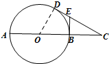 分析 (1)由切割线定理可得CD2=CA•CB,连接OD,根据切线的性质及切线长定理可得OD⊥CD,BE=ED,结合已知中DE=$\frac{1}{2}$EC,易得∠C=30°,进而可得CA=3CB;