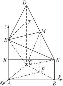 则有A(0,0,0),E(0,0,2),B(0,2,0),D(-2,0,3),N(0,2,1),C(-2,0,0).