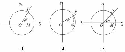 时,如图(3),OM<MP,所以cosα<sinα..