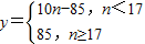 解答:解:(Ⅰ)当日需求量n≥17时,利润y=85;当日需求量n<17时,利润y=10n-85;