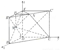 (II)以A为坐标原点,分别以直线AB、AC、AA′为x,y,z轴,建立直角坐标系,设AA′=1,推出A,B,C,A′,B′,C′坐标求出M,N,设