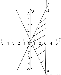 解答:解:不等式表示的平面区域为三角形,如图所示,其中A(3,6),B(3,-6)