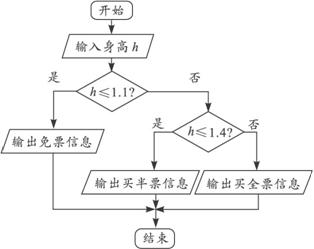 思路分析:是否买票,买何种票,都是以身高作为条件进行判断的,此处形成条件结构嵌套.程序框图是