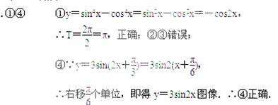 ④把函数y=3sin(2x+)的图像向右平移得到y=3sin2x的图像.