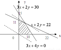 【答案】分析:根据每月的资金供应量,我们先列出满足条件的约束条件,进而画出可行域,平移目标函数的变形直线,可得最优解.