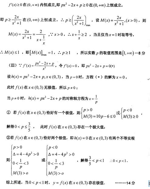(2)若函数在其定义域内是增函数,求正实数p的取值范围;