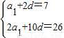 已知等差数列{an}满足:a3=7,a5+a7=26.{an}的前n项和为Sn.(Ⅰ)求an及Sn;