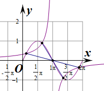 由图象可知,两个函数在[0,2π]上共有4个交点,两两关于点(π,0)对称,![]()