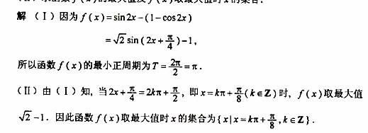 (I)求函数的最小正周期。