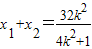 由△=(-32k2)2-4(4k2+1)(64k2-4)>0,得12k2-1<0,∴