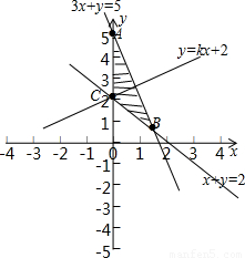 所表示的平面区域,求出平面区域的面积以及在直线y=kx+2 一侧的面积;再结合平面区域被直线y=kx+2 分为面积相等的两部分即可求出k的值.