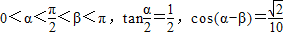 (2)根据角的范围求出sin(α-β),可得tan(α-β)的值,进而求得tanβ 的值,根据 β范围求出 β 的大小.
