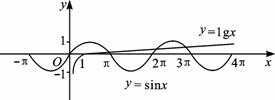 在同一坐标系中,作函数y=sinx和y=lgx的图象,根据图象判断出方程sinx=lgx的解的个数.