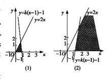 当这条直线的斜率为正值时,y≤k(x-1)-1所表示的是直线y=k(x-1)-1及其下方的平面,