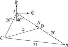 某观测站C在城A的南20°西的方向,由城出发的一条公路,走向是南40°东,在C处测得公路上B处有一人距C为