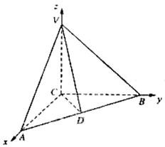 解法2:(Ⅰ)以CA、CB、CV所在的直线分别为x轴、y轴、z轴,建立如图所示的空间直坐标系,则C(0,0,0),A(a,0,0),B(0,a,0),D![]()