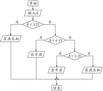 第三步,否则,若A<4.19,则输出“你的星座是:白羊座”;