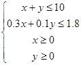 某投资人打算投资甲、乙两个项目.根据预测,甲、乙两个项目最大盈利率分为 100%和50%,可能的最大亏损率分别为30%和10%.投资人计划投入的资金额不超过10万元.如果要求确保可能的投入资金的亏损不超过1.8万元,问投资人对甲、乙两个项目各投资多少万元,才能使可能产生的盈利最大?
