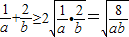 ∴ab≥8,当且仅当a=2,b=4时等号成立