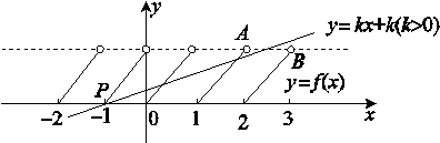 若直线y=kx+k(k>0)与函数y=f(x)的图象恰有三个不同的交点,结合图象可得:kPB≤k<kPA,