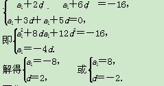 已知等差数列{an}中,a3a7=-16,a4+a6=0,求{an}的前n项和Sn.