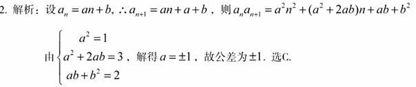 若等差数列满足,则公差为 ( )