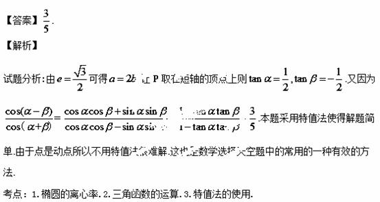已知椭圆的离心率,A,B是椭圆的左、右顶点,P是椭圆上不同于A,B的一点,直线PA,PB倾斜角分别为,则