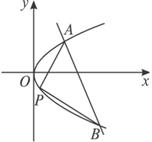 解:|AB|为定值,△PAB面积最大,只要点P到AB的距离最大,只要点P是抛物线的平行于AB的切线的切点,设P(x,y).由图可知,点P在x轴下方的图象上,