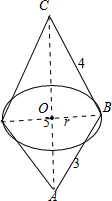 将此三角形绕AC边旋转一周所成的几何体为两个对底面的上下两个圆锥,其底面半径为三角形斜边上的高r=