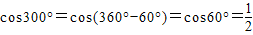 cos300°的值是( )