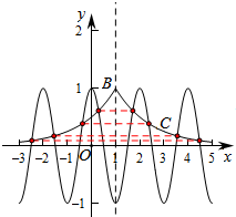 由图象可知,两个函数在-3≤x≤5上共有8个交点,两两关于x=1对称,
