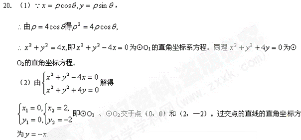 ⊙O1和⊙O2的极坐标方程分别为(1)⊙O1和⊙O2的极坐标方程化为直角坐标方程;(2)求经过⊙O1和⊙O2交点的直线的直角坐标方程。