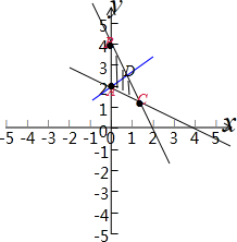 由 $\left\{\begin{array}{l}{2x+y=4}\\{y=kx+2}\end{array}\right.$,解得:$\left\{\begin{array}{l}{x=\frac{2}{k+2}}\\{y=\frac{4k+4}{k+2}}\end{array}\right.$,故点D($\frac{2}{k+2}$,$\frac{4k+4}{k+2}$)