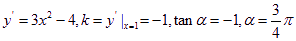 处的切线倾斜角为__________;