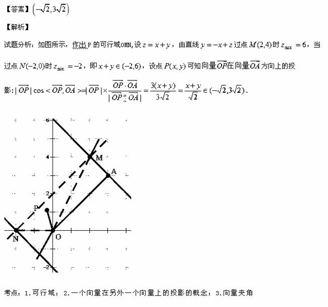已知点A(3,3),O 为坐标原点,点P()坐标满足则方向上的投影的取值范围是 .
