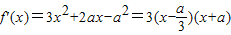 解答:解:(Ⅰ)∵f'(x)=3x2+2ax-a2=