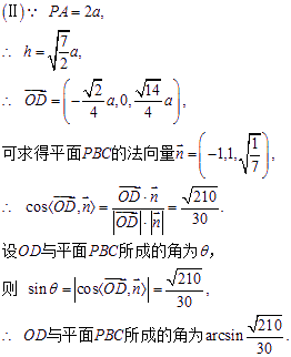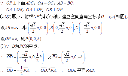 PA,点O、D分别是AC、PC的中点,OP⊥底面ABC,则直线OD与平面PBC所成角的正弦值 ( )