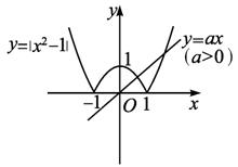 解关于x的不等式|x2-1|<ax(a>0).解:设y1=|x2-1|,y2=ax(a>0),如下图所示分别画出两个函数的图象