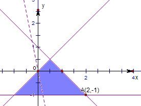 直线m=2x+y过点A(2,-1)时,m最大值3,