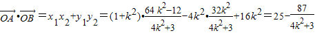 由△>0得:1024k4-4(3+4k2)(64k2-12)>0,解得k2<