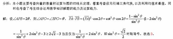 已知圆O的半径为1,PA、PB为该圆的两条切线,A、B为两切点,那么
