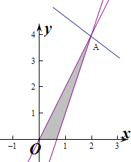 由$\left\{\begin{array}{l}{3x-y-2=0}\\{2x-y=0}\end{array}\right.$,解得$\left\{\begin{array}{l}{x=2}\\{y=4}\end{array}\right.$,即A(2,4),