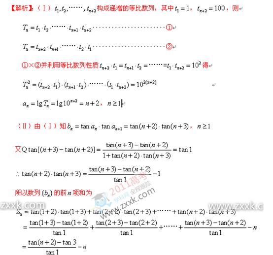 (本小题满分13分)在数1和100之间插入个实数,使得这个数构成递增的等比数列,将这个数的乘积记作,再令.(Ⅰ)求数列的通项公式;(Ⅱ)设,求数列的前项和.