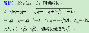 在直线x-y+2=0上求一点P,使P到圆x2+y2=1的切线长最短,并求出此时切线的长.