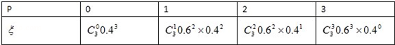 P(ξ=3)=C33p0(1﹣p)0=C330.63×0.40=0.216,