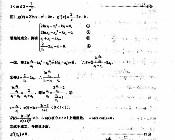 (Ⅲ)令g(x)=f(x)-kx,若g(x)的图象与x轴交于A(x1,0),B(x2,0)(其中x1<x2),AB的中点为C(xO,0),求证:g(x)在xO处的导数g′(xO)≠0.