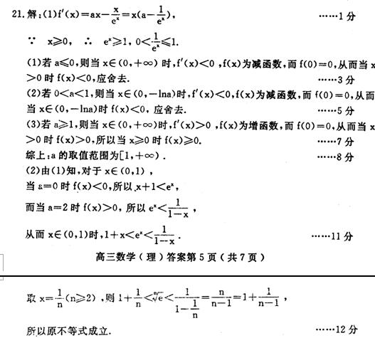 (本小题满分12分)设函数f(x)=+-1.(1)若x≥0时,f(x)≥0恒成立,求a的取值范围;(2)求证:对于大于1的正整数n,恒有1+<<1+成立.